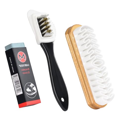 Mockaborste för skoset, råläderborste, mångsidig användbar råläderborste, skohållare med mässingsborst, med suddgummi och rengöringsduk, för nubuckk, mocka och velour