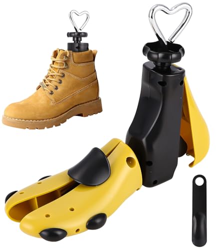 Halcent Skoblock för män och kvinnor, 2-vägs skoblock i plast och metall, skosträckare för justerbar längd och bredd, med skohorn, GUL, 41-46