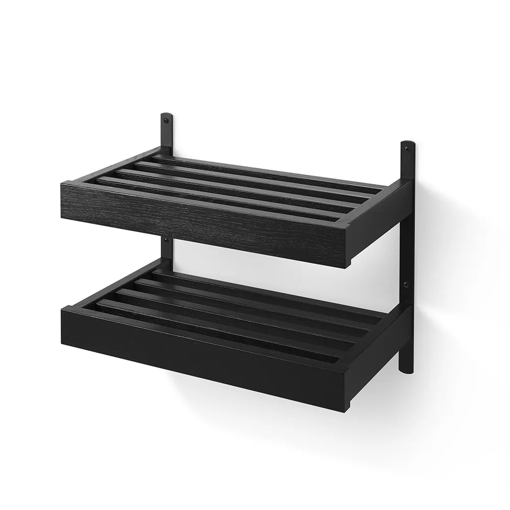 Oscarssons Möbel, Nadja Skohylla 50 cm 2 plan väggmonterad Svartbetsad Ek/Mattsvart stål