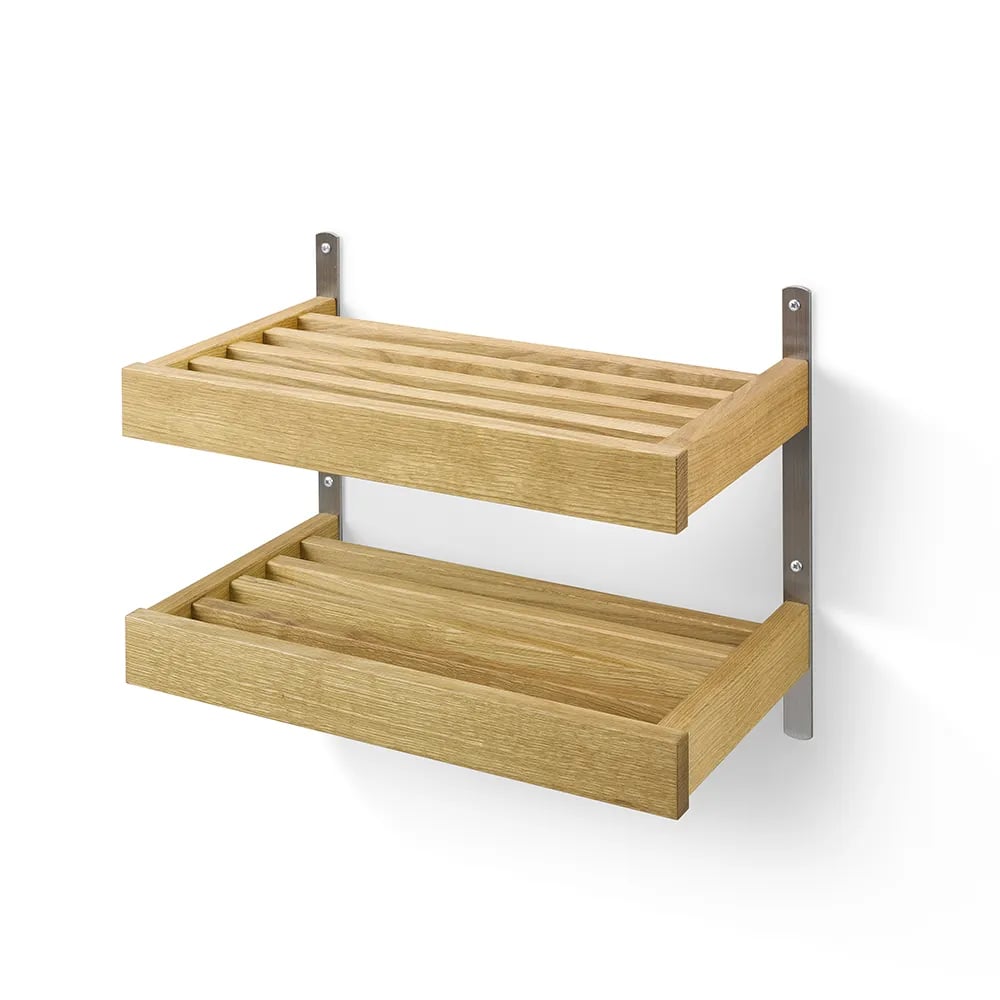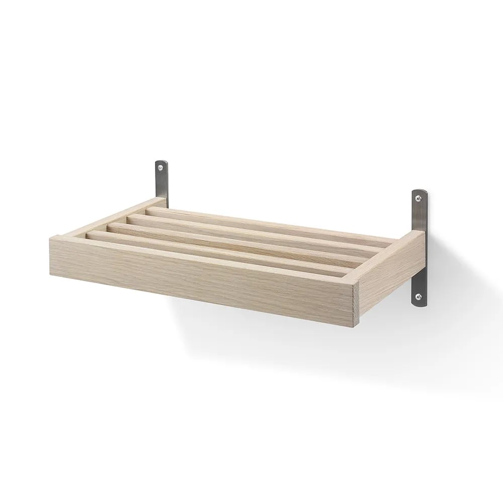 Oscarssons - Nadja skohylla (Väggmonterad, 1 Plan, 50 cm, Slipat stål, Lackad Ek)