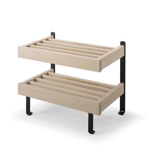 Oscarssons - Nadja skohylla (Golvmonterad, 2 Plan, 50 cm, Mattsvart stål, Vitoljad ek)