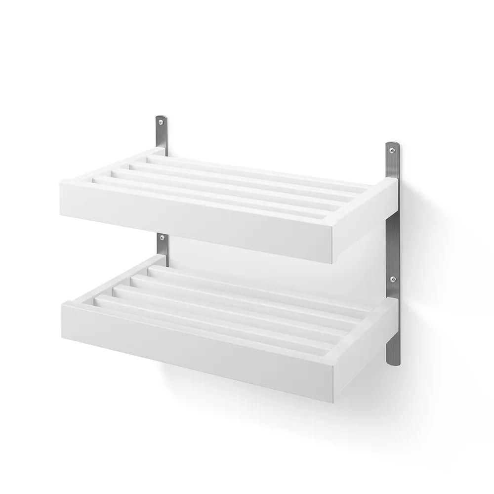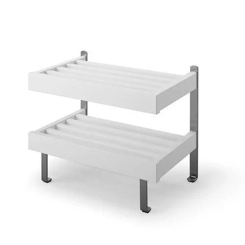 Oscarssons - Nadja skohylla (Golvmonterad, 2 Plan, 50 cm, Slipat stål, Vitlack)