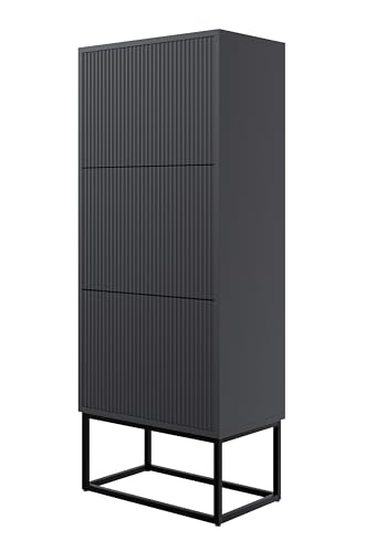 Selsey Skoskåp, skohylla, 50 cm, 3 klaffar, skoskåp, 12 par skoförvaring, stående, svart, svarta ben, Veldio