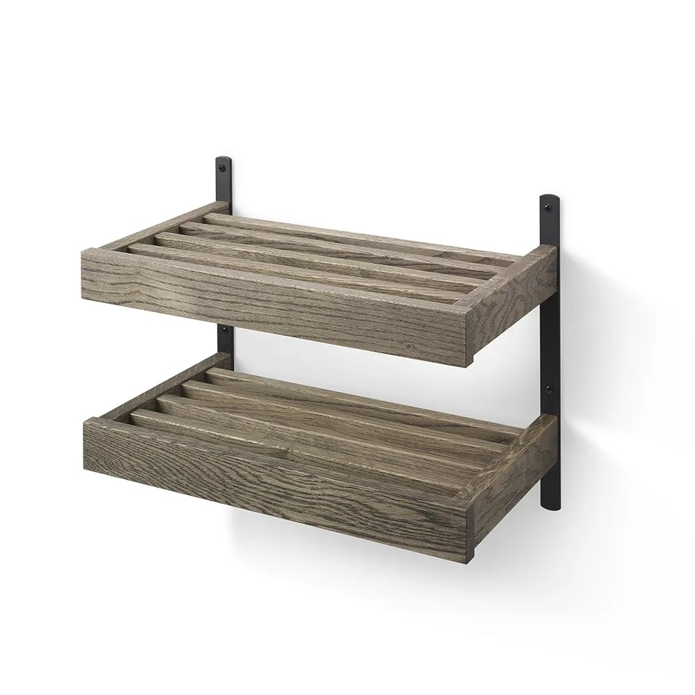 Oscarssons Möbel, Nadja Skohylla 50 cm 2 plan väggmonterad Rökt Ek/Mattsvart stål