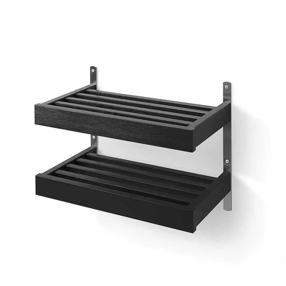 Oscarssons Möbel, Nadja Skohylla 50 cm 2 plan väggmonterad Svartbetsad Ek/Slipat stål