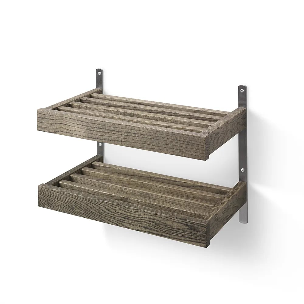 Oscarssons - Nadja skohylla (Väggmonterad, 1 Plan, 50 cm, Slipat stål, Rökoljad Ek)