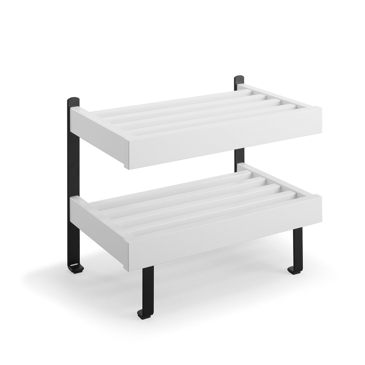 Oscarssons - Nadja skohylla (Golvmonterad, 2 Plan, 50 cm, Mattsvart stål, Vitlack)