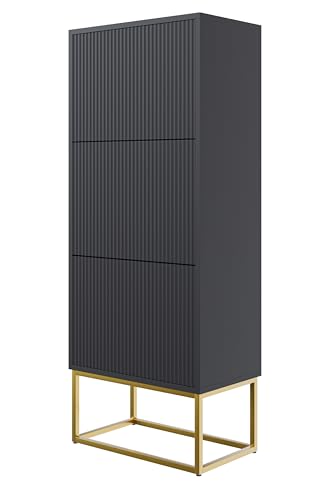 Selsey Skoskåp, skohylla, 50 cm, 3 klaffar, skoskåp, 12 par skoförvaring, stående, svart, gyllene ben, veldio