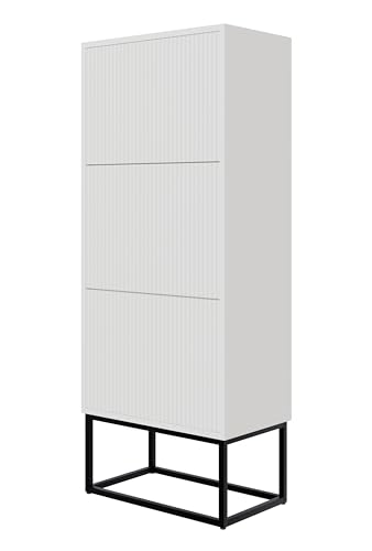 Selsey Skoskåp, skohylla, 50 cm, 3 klaffar, skoskåp, 12 par skoförvaring, stående, vit, svarta ben, Veldio