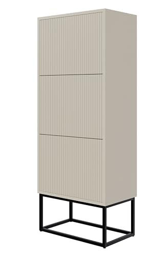 Selsey Skoskåp, skohylla, 50 cm, 3 klaffar, skoskåp, 12 par skoförvaring, stående, gråbeige, svarta ben, veldio