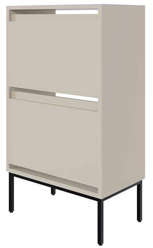 Selsey Skoskåp, skohylla, 50 cm, 2 klaffar, skoförvaring, stående, gråbeige, svarta ben, Bemmi