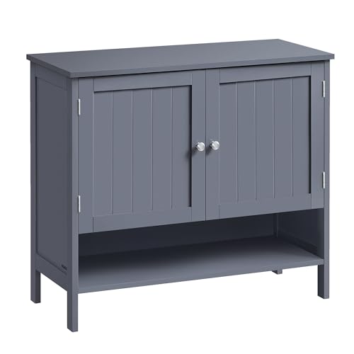 VASAGLE Skoskåp, Skohylla, Skoförvaring, Modern lantlig stil, Fristående skåp med höjdjusterbara hyllor, 35 x 80 x 70 cm, Entré, Skiffergrå LBC044G01