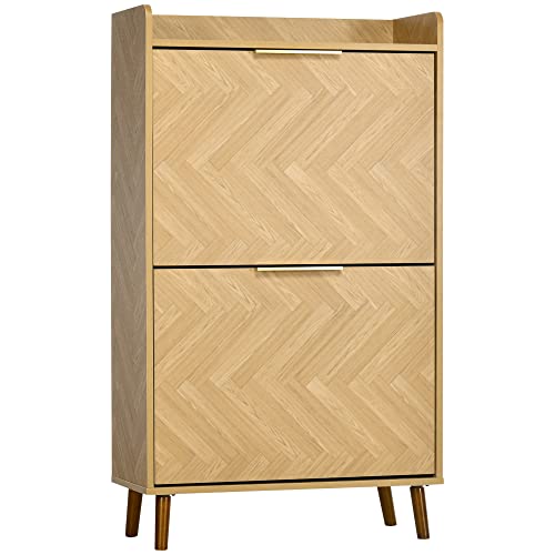 HOMCOM Skoskåp med 2 fällor, skohylla i vintagestil 12 par, liten entré, vardagsrum, sovrum, 70 x 30 x 120 cm