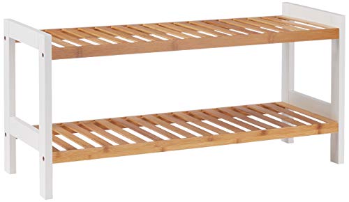 Relaxdays Skohylla, 2 hyllor, robust skoförvaring, bambu och MDF, skoförvaring HBT 36,5 x 70 x 26 cm, vit/natur