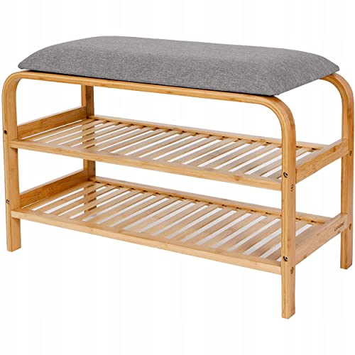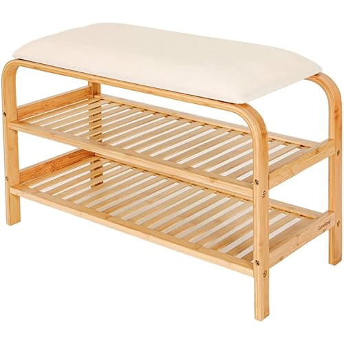 Relaxdays, Naturlig skohylla i bambu, skobänk med sits och 2 hyllor, sittbänk hall, badrumsbänk, 45 x 70 x 28 cm, 1 styck