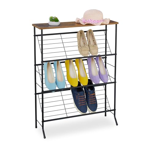Relaxdays Skohylla industriell för 9 par, HBD 89,5 x 70 x 23,5 cm med hylla, snedställda våningar, metall, svart-brun