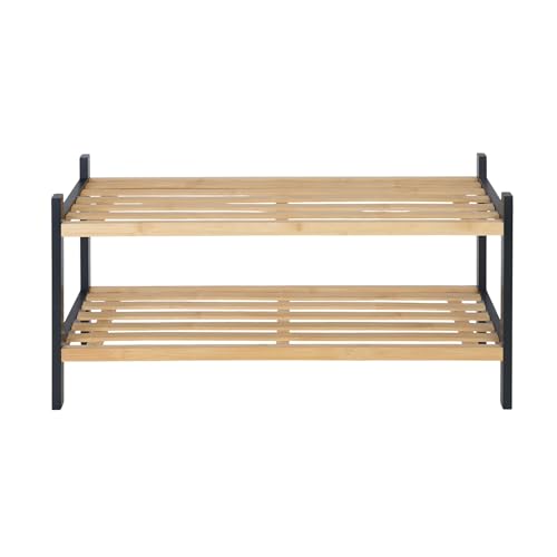 Relaxdays skohylla, 2 plan, H x B x D: ca 33 x 70 x 26 cm, tillverkad av bambu, skoförvaring, modern, natur/svart