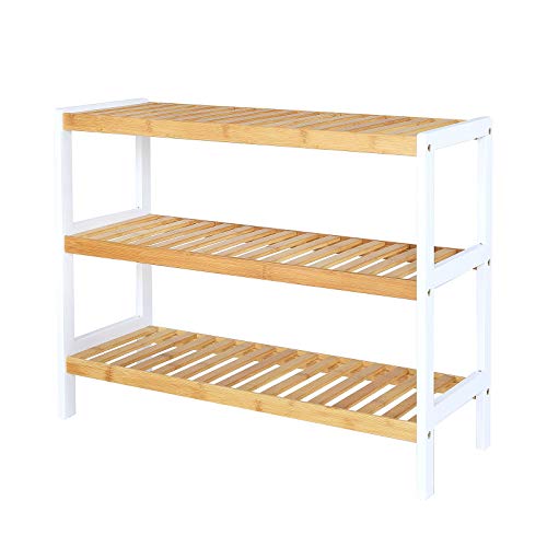 dibea Skohylla med 3 förvaringsfack, skoskåp, bambuhylla, stående hylla, kökshylla, vardagsrumshylla, 70 x 26 x 55 cm, naturfärger/vit