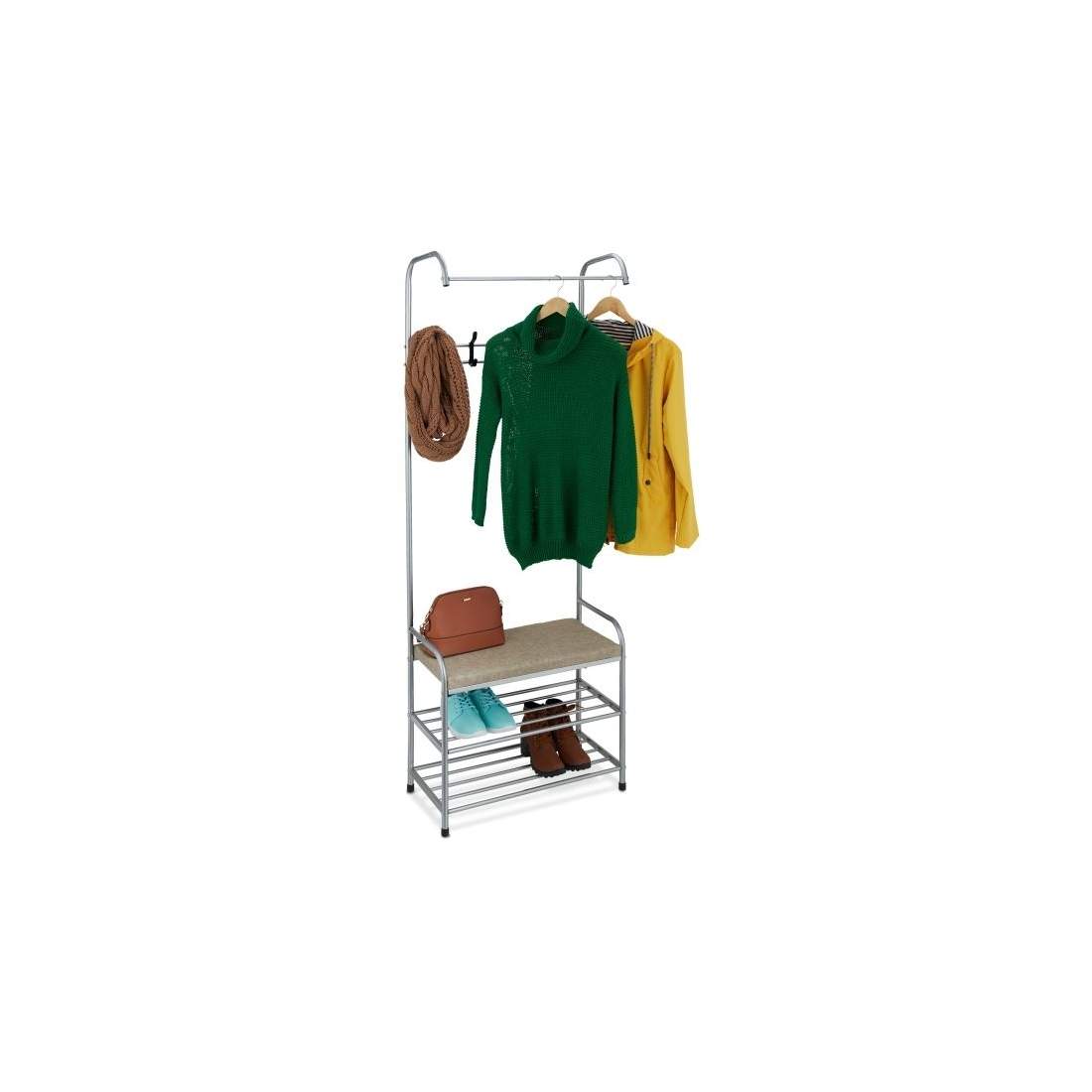 Relaxdays Garderob med skohylla och bänk, metall, stående, hallgarderob med 4 krokar, HBT: 173 x 64 x 30 cm, grå