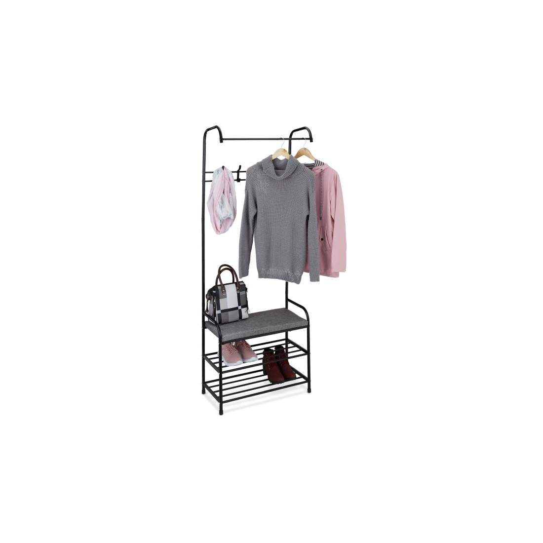 3-i-1 klädhängare med bänk och skohylla – svart metall
