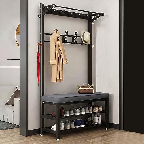 Kläddställ Skohylla, Metallkappa Hattställ Fristående med 3-vånings skohylla bänk, hattparaplystativ Hallarrangör, 3-i-1 Hall Träd/a/100 * 40 * 175 cm (B 100 * 40 * 175 cm)