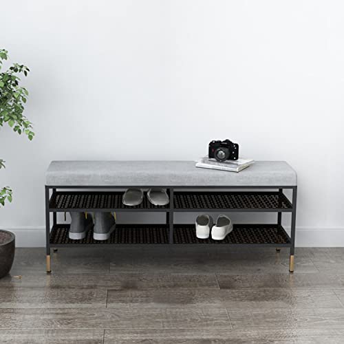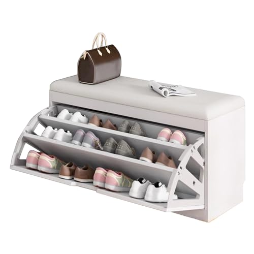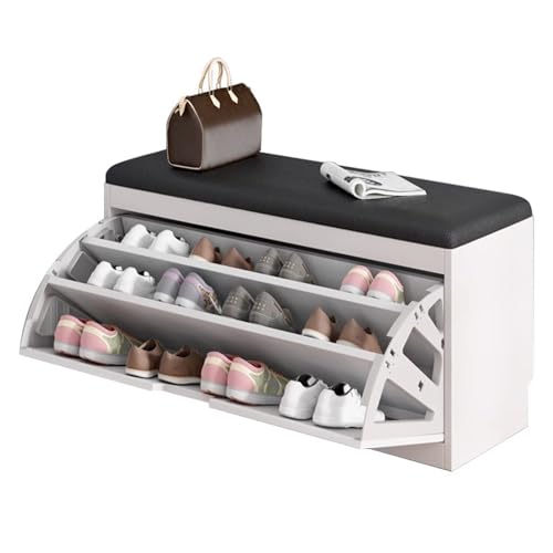 YARUQN Skobänk med dyna Bänk med skoförvaring, 3 nivåer Skohylla Skoskåp med dyna, Förvaringsbänk med vadderad sits, för hall entré sovrum vardagsrum