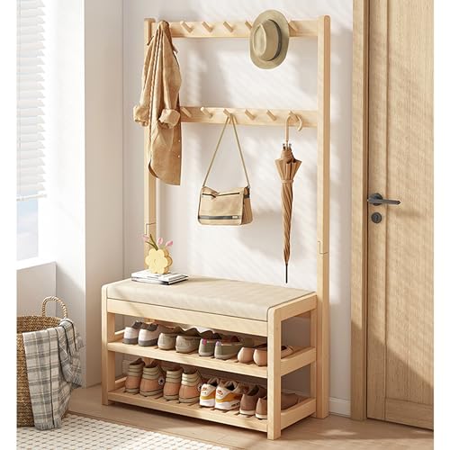 YUGXTH Entryway Skobänk Skoförvaringsbänk, Skohylla Trä, Skoställsbänk med Vadderad Kudde, Bänk med Skoförvaring, Sittbänk med Sittdyna för 6–8 Par Skor, 2-vånings Skoställ Organizer (Color : A, Siz