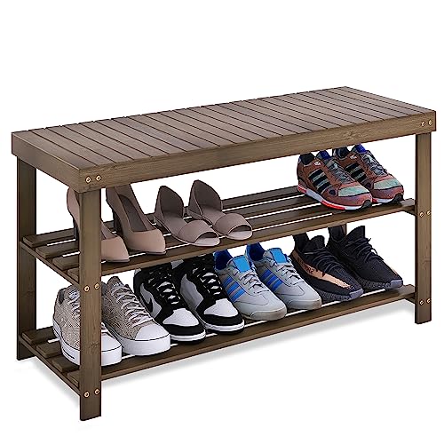 SMIBUY Bambu Skohylla Bänk, 3-Tier Shoe Organizer Förvaringshylla för entré Hall Badrum Vardagsrum (mörkbrun)