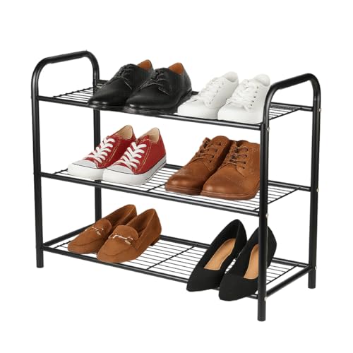 Xerhnan 3-nivåer stapelbart litet skoställ, lätt skohylla förvaring organisatör för entré, hall och garderob (svart)
