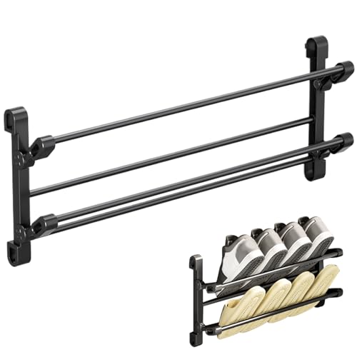 BEAHING Väggmonterad Vikbar Skohylla - 2-Nivåer för Husbil Organisation och Förvaring, Platsbesparande Skohållare för Badrum 50 x 25 x 12,7 cm