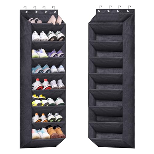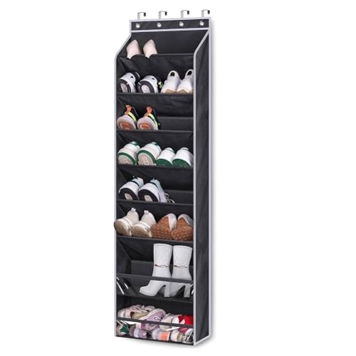 QUMENEY skoförvaring med 8 hyllor för att hänga över dörren, skohylla för dörrskåpet med djupa fickor, förvaring bakom dörren för 24 par skor (svart)