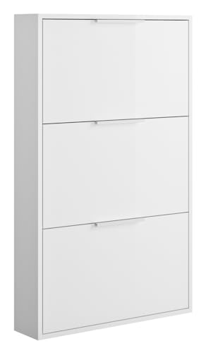 Composad | Smal skohylla med 3 ribbor, platsbesparande skohylla för entré, förvaring, skohylla (B x H x D), 65 x 105,5 x 15 cm, lackvit, tillverkad i Italien