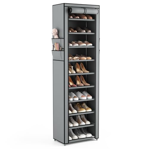 Vicye Skohylla med 10 plan, skoskåp, smalt och högt för 20–22 par skor, skohylla av tyg med dammsäkert överdrag, skoställ platsbesparande för hall entré