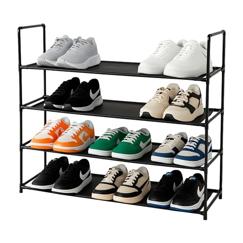 Amig - Undern skohylla med 4 nivåer | 86 x 28 x 71,5 cm, vattentät plast och tyg | svart | lätt och lätt att rengöra | Entré- eller sovrumsorganisatör