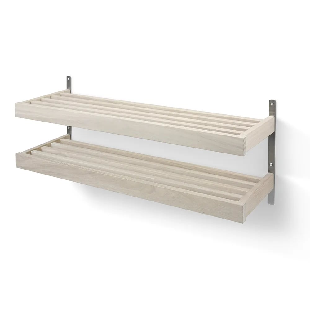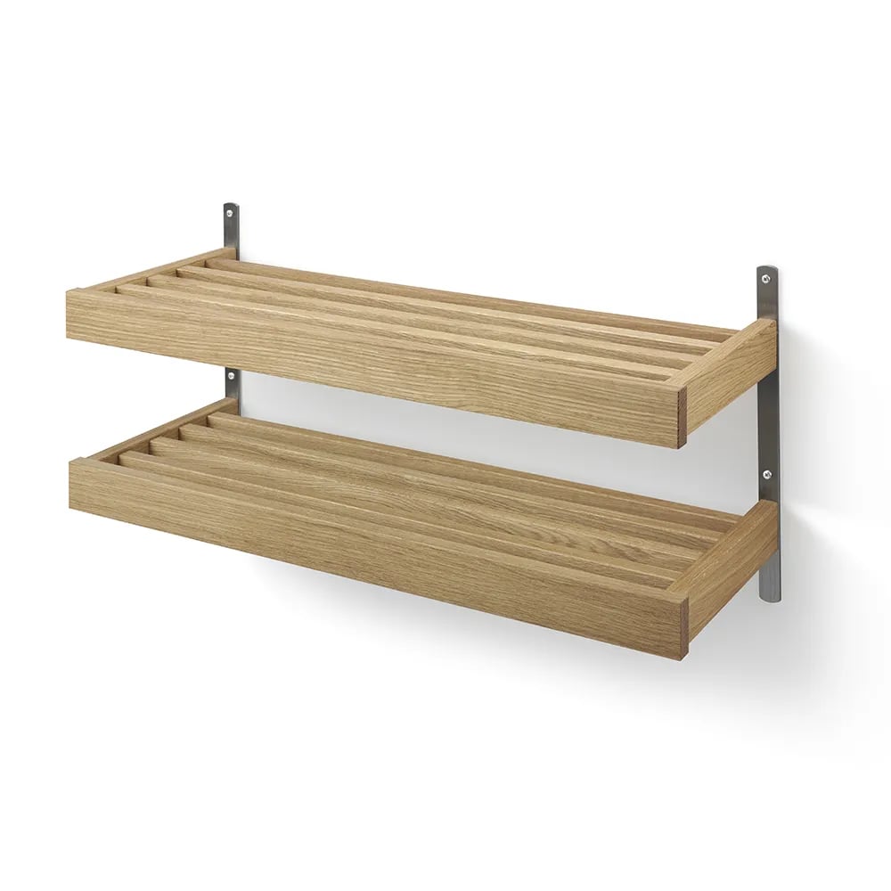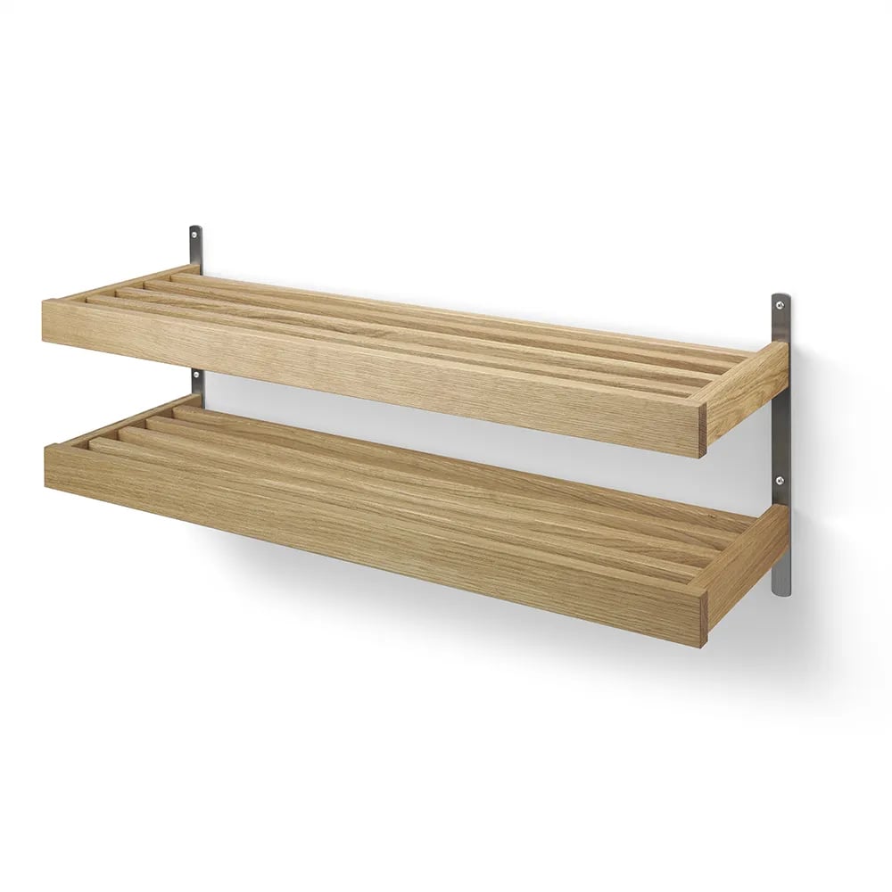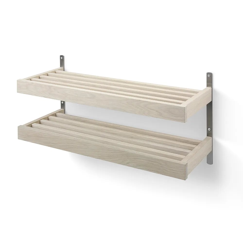 Oscarssons Möbel, Nadja Skohylla 80 cm 2 plan väggmonterad Vitoljad Ek,/Slipat stål