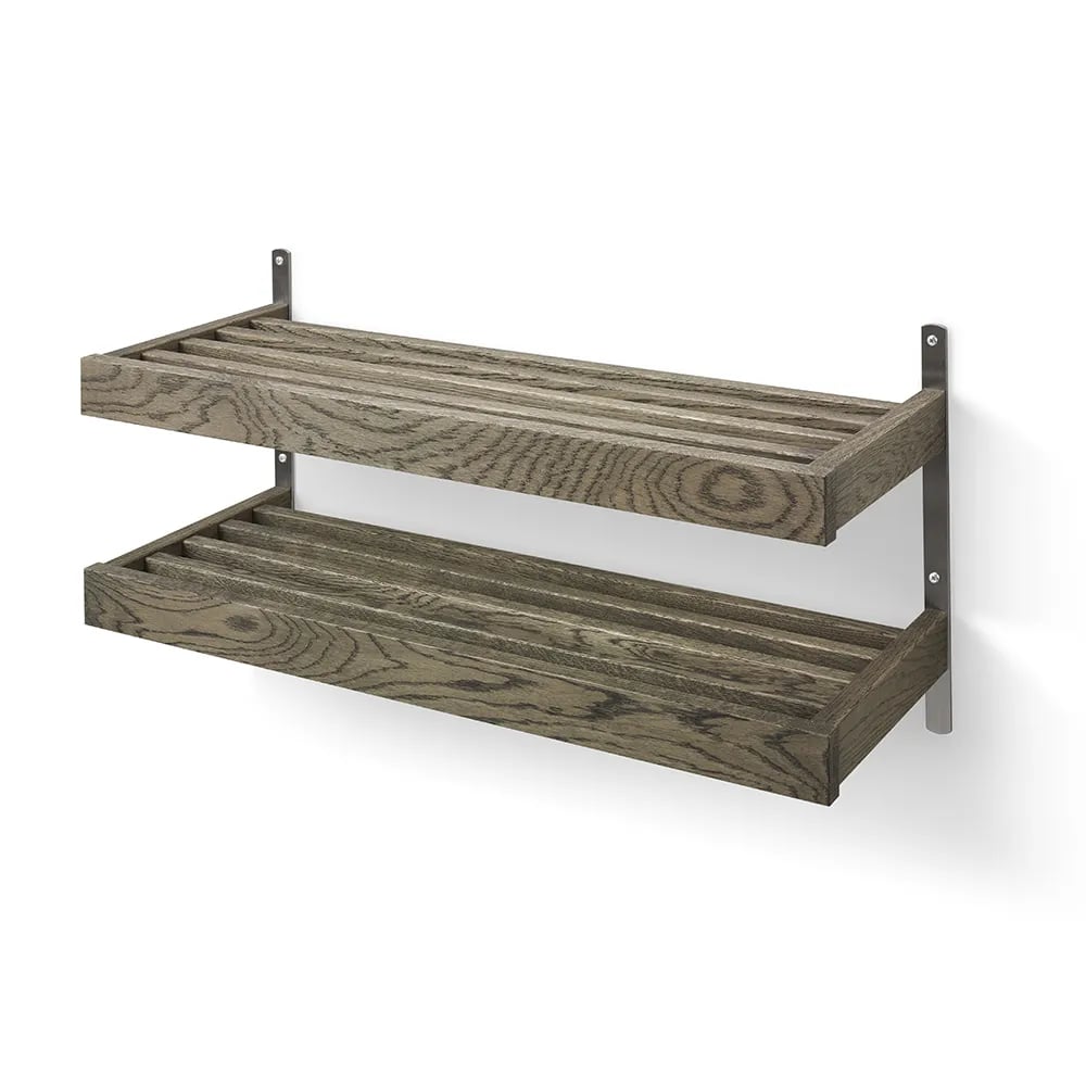 Oscarssons Möbel, Nadja Skohylla 50 cm 2 plan väggmonterad Rökt Ek/Slipat stål