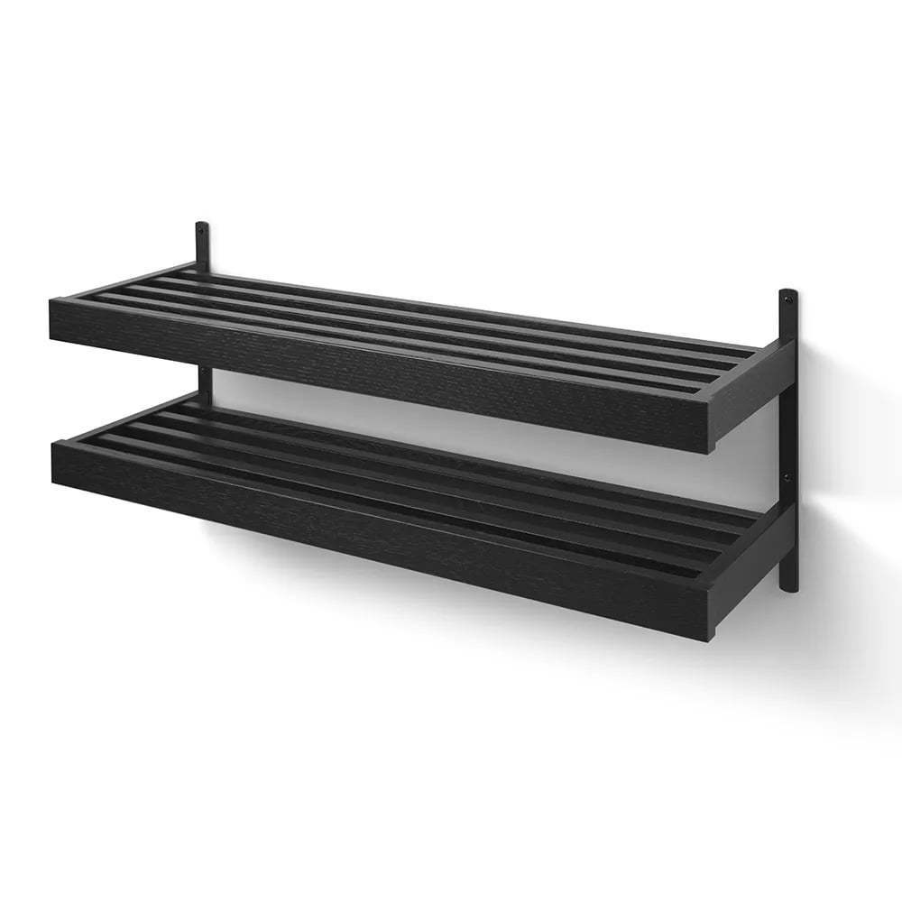 Oscarssons Möbel, Nadja Skohylla 100 cm 2 plan väggmonterad Svartbetsad Ek/Mattsvart stål