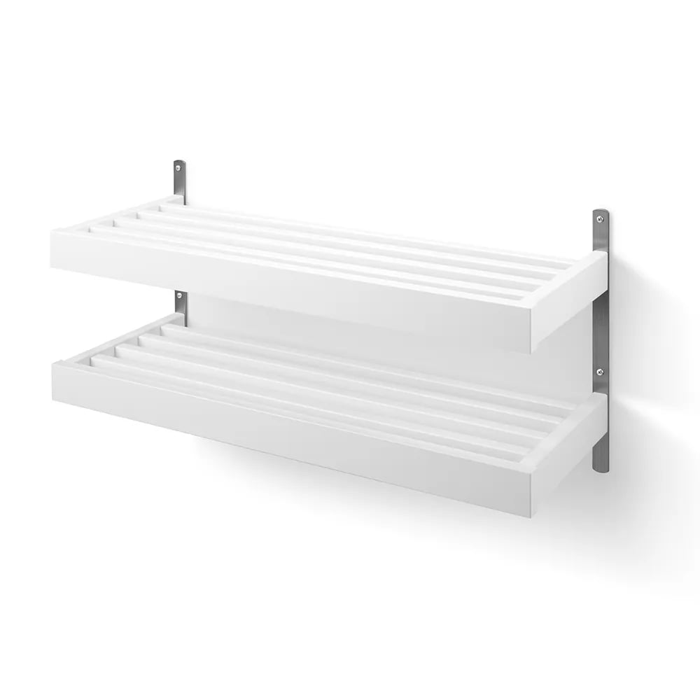 Oscarssons Möbel, Nadja Skohylla 80 cm 2 plan väggmonterad Vitlackad Björk/Slipat stål