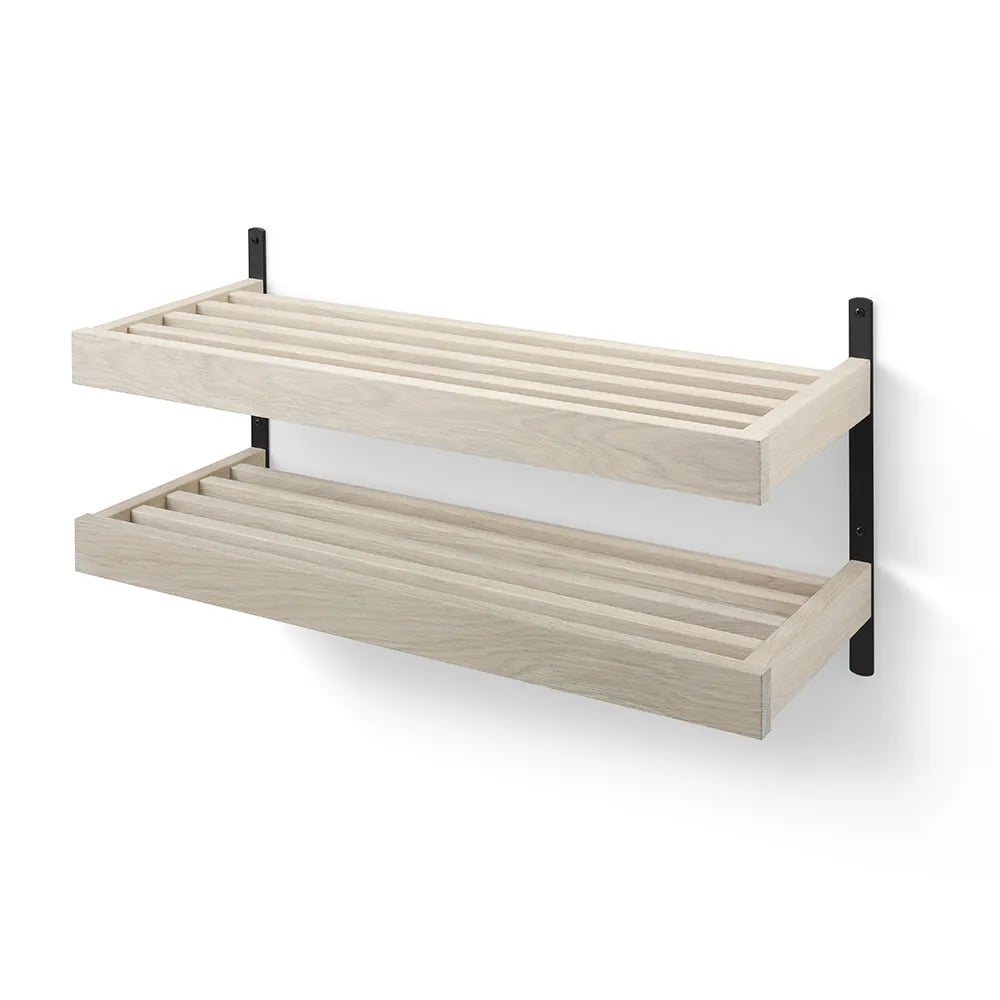 Oscarssons Möbel, Nadja Skohylla 80 cm 2 plan väggmonterad Vitoljad Ek/Mattsvart stål