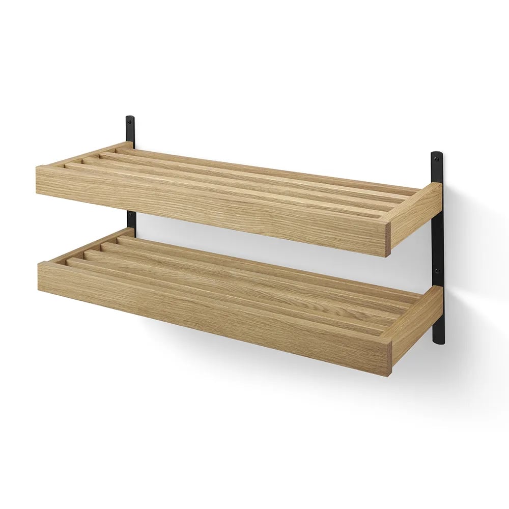 Oscarssons Möbel, Nadja Skohylla 100 cm 2 plan väggmonterad Oljad Ek/Mattsvart stål