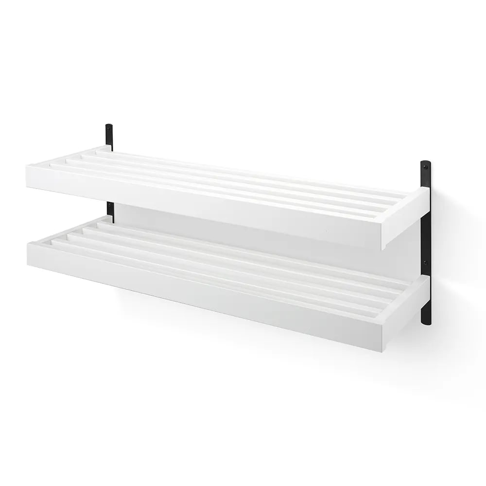 Oscarssons Möbel, Nadja Skohylla 100 cm 2 plan väggmonterad Vitlackad Björk/Mattsvart stål