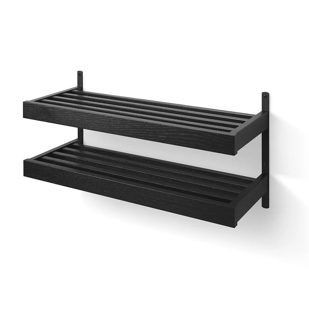 Oscarssons Möbel, Nadja Skohylla 80 cm 2 plan väggmonterad Svartbetsad Ek/Mattsvart stål
