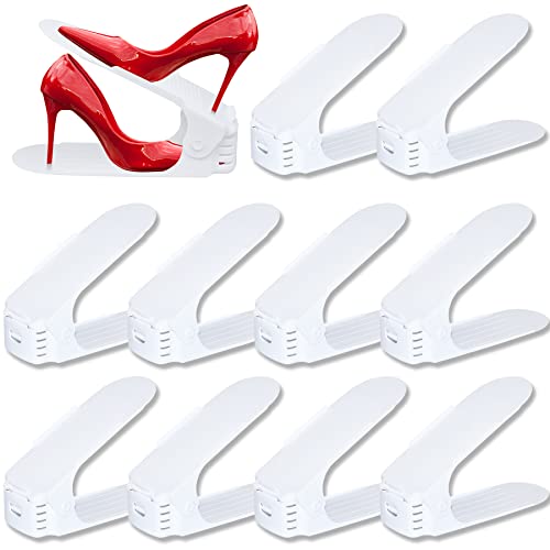 Froadp Fristående Justerbara Skohyllor 3 Höjdjusterbara Skoställ för Halkfria Skor PP Dubbla Lager Skoorganisator Stacker Set Utrymmessparande Förvaring av Skoställ (30 Stycken, Vit)