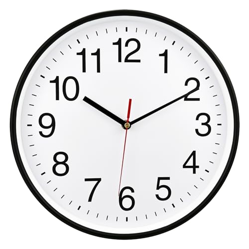 Bernhard Products svart väggklocka tyst tickar inte 25 cm kvalitet kvarts batteridriven rund lätt att läsa hem/kontor/kök/klassrum/skolklocka svepande rörelse