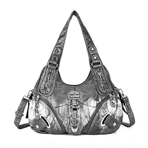Angelkiss Hobo, väskor och handväskor för kvinnor, skolväska, handväska, handväskor, stora dagliga axelväskor, Rökig grå, Large