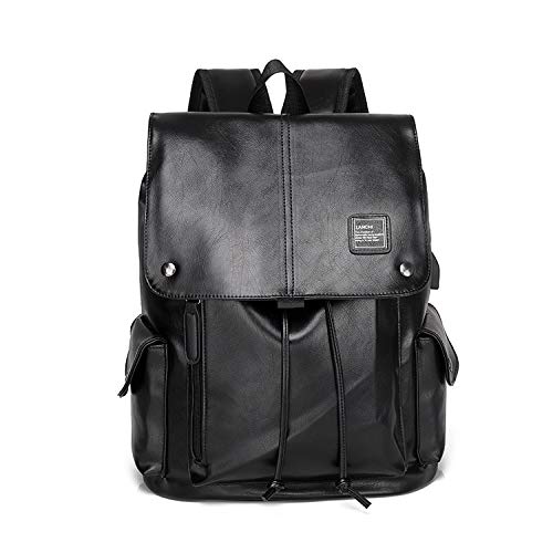 FANDARE PU-ryggsäck ryggsäck med USB-laddningsport PC vattentät tonåring skolväska herr college väska ryggsäck arbete ryggsäck för resor camping vandring skola dagpack, Svart, L, Elegant