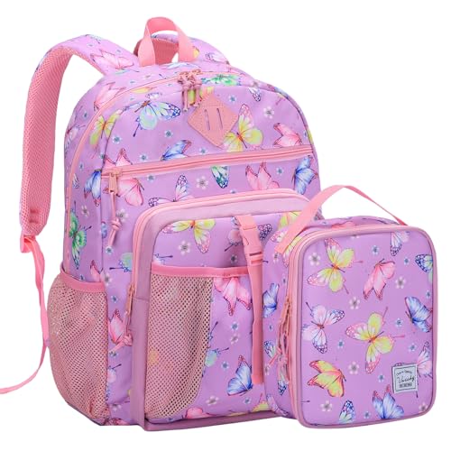VASCHY Skolryggsäck med lunchväska, vattenavvisande ryggsäck herr skolväskor högskola skolväska casual dagryggsäck flickor pojkar tonåring resor Fjäril