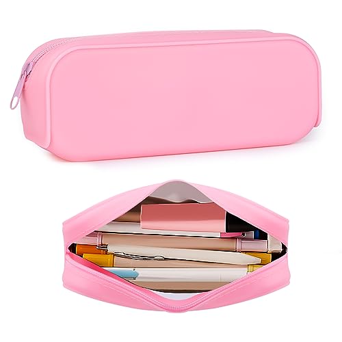 HORJOR Silikon pennfodral med stor kapacitet skolväska flicka tonåring pastell skolväska brevpapper organisatör för dam och herr, pink, 22 * 5 * 2cm, Mode