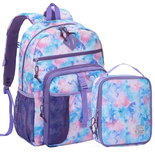 VASCHY Skolryggsäck med lunchväska, vattenavvisande ryggsäck herr skolväskor högskola skolväska casual dagryggsäck flickor pojkar tonåring resor Flerfärgad