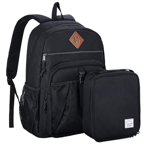 VASCHY Skolryggsäck med lunchväska, vattenavvisande ryggsäck herr skolväskor högskola skolväska casual dagryggsäck flickor pojkar tonåring resor Svart